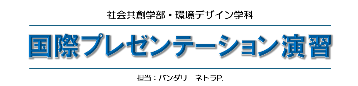 本受業は、英語による発表で頻繫に使われる用語の演習と共に、発表資料作成方法について学習します。演習授業で学んだことを活かし、後半ではグループワークを中心に各グループによる英語での発表を行います。